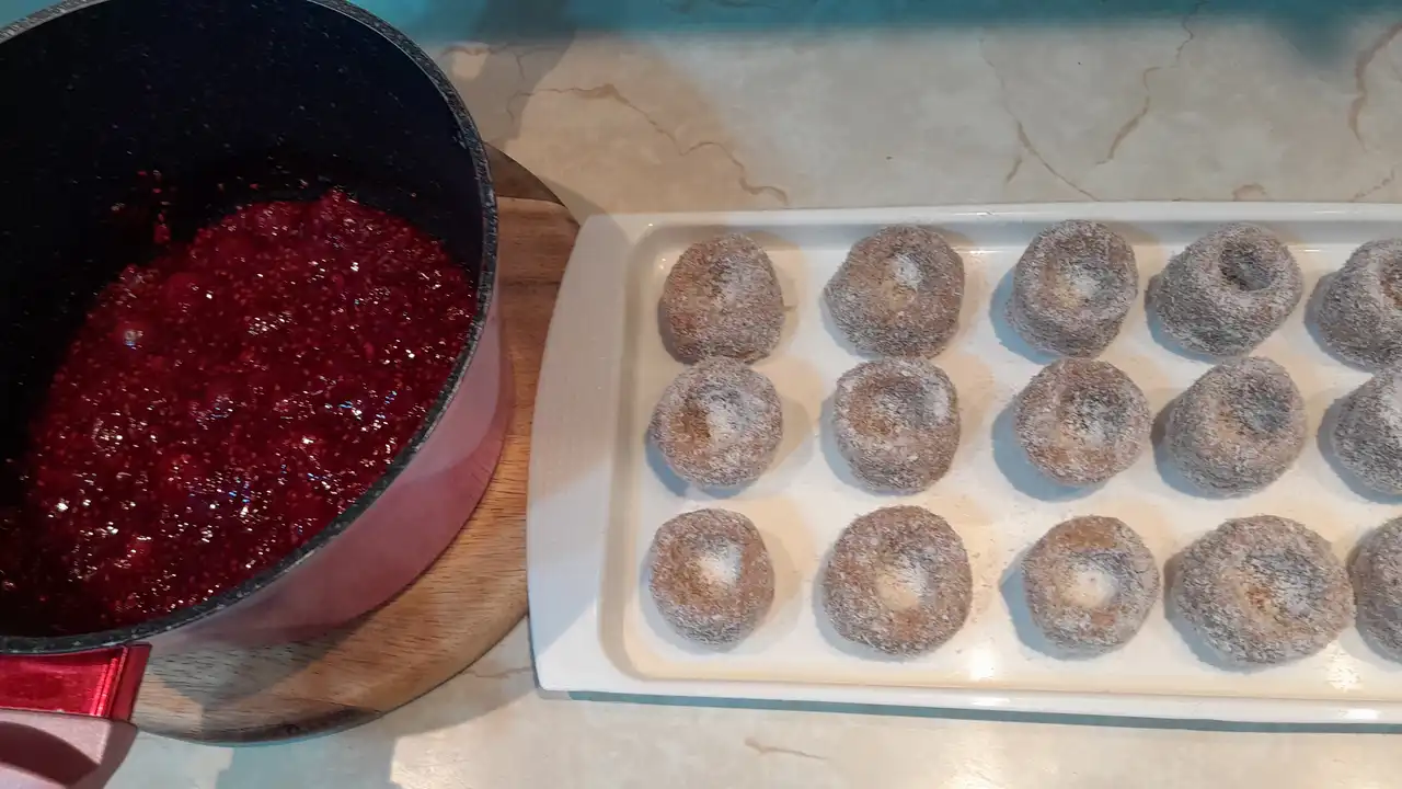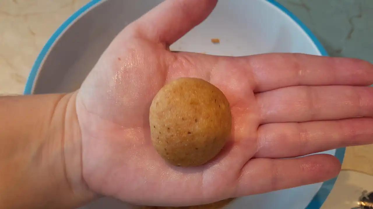 Evo kako sam ja, sa malo mašte iz moje kuhinje, pretvorila ove sastojke u bajku koja se topi u ustima – posne kuglice koje šire letnji miris čak i u hladnim posnim danima. Brzo se prave, a svaka je kao mali patuljak pun ljubavi i slatkog iznenađenja za 16 porcija radosnih debelci-patuljci-draguljci.