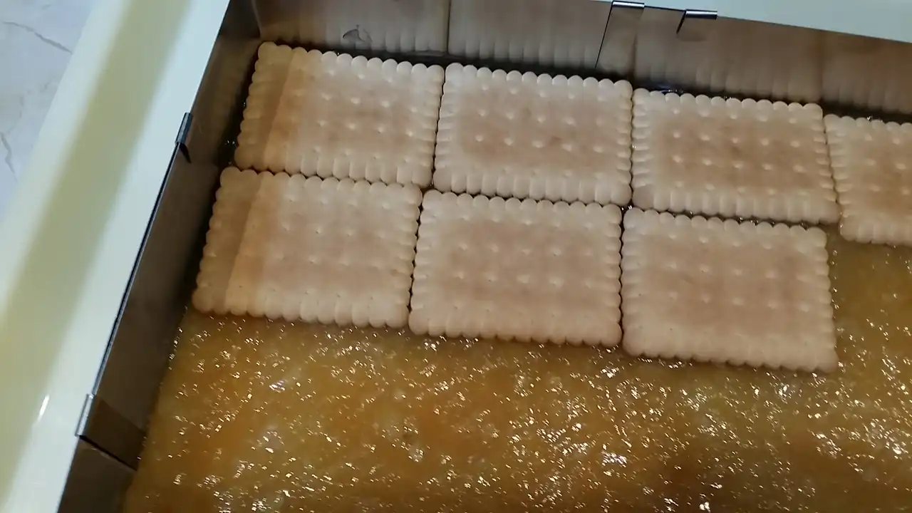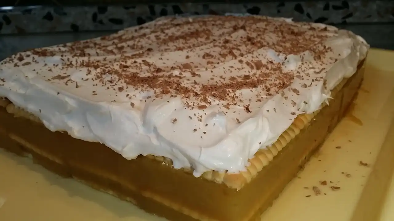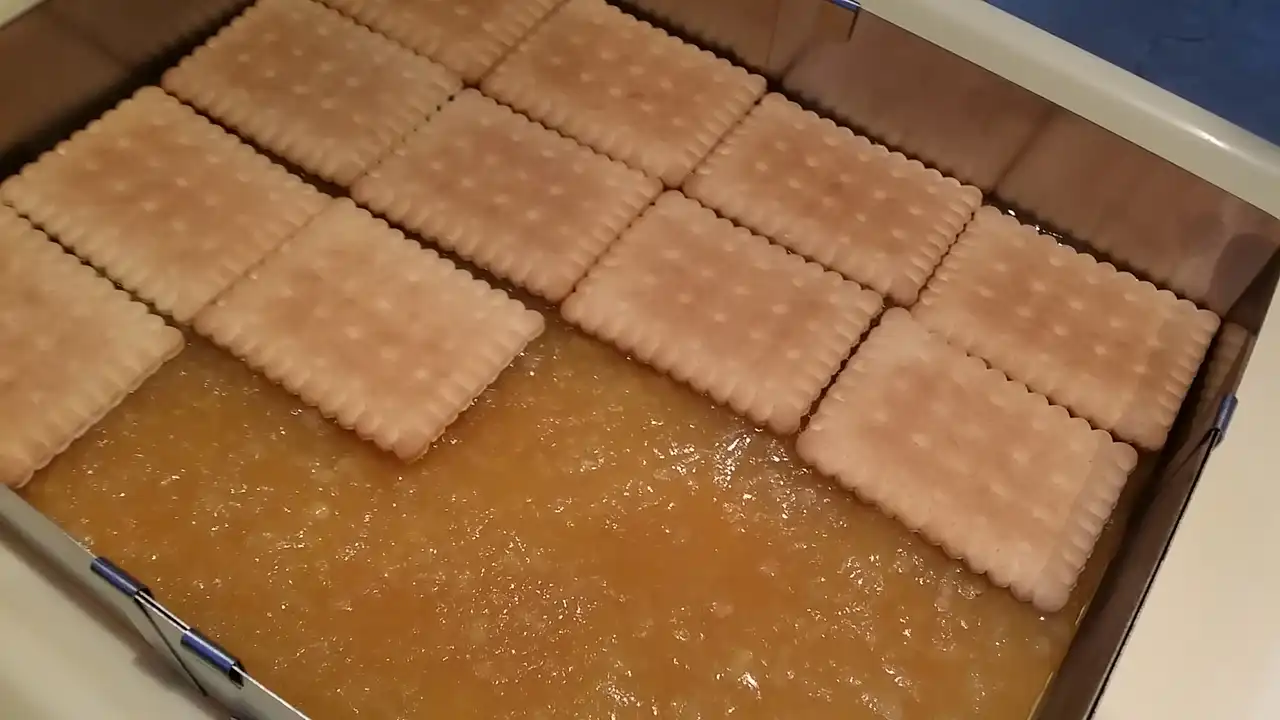 Kolač sa jabukama i pudingom je osvježavajući kolač koji je idealan za tople letnje dane, zato što se servira hladan, iz frižidera.