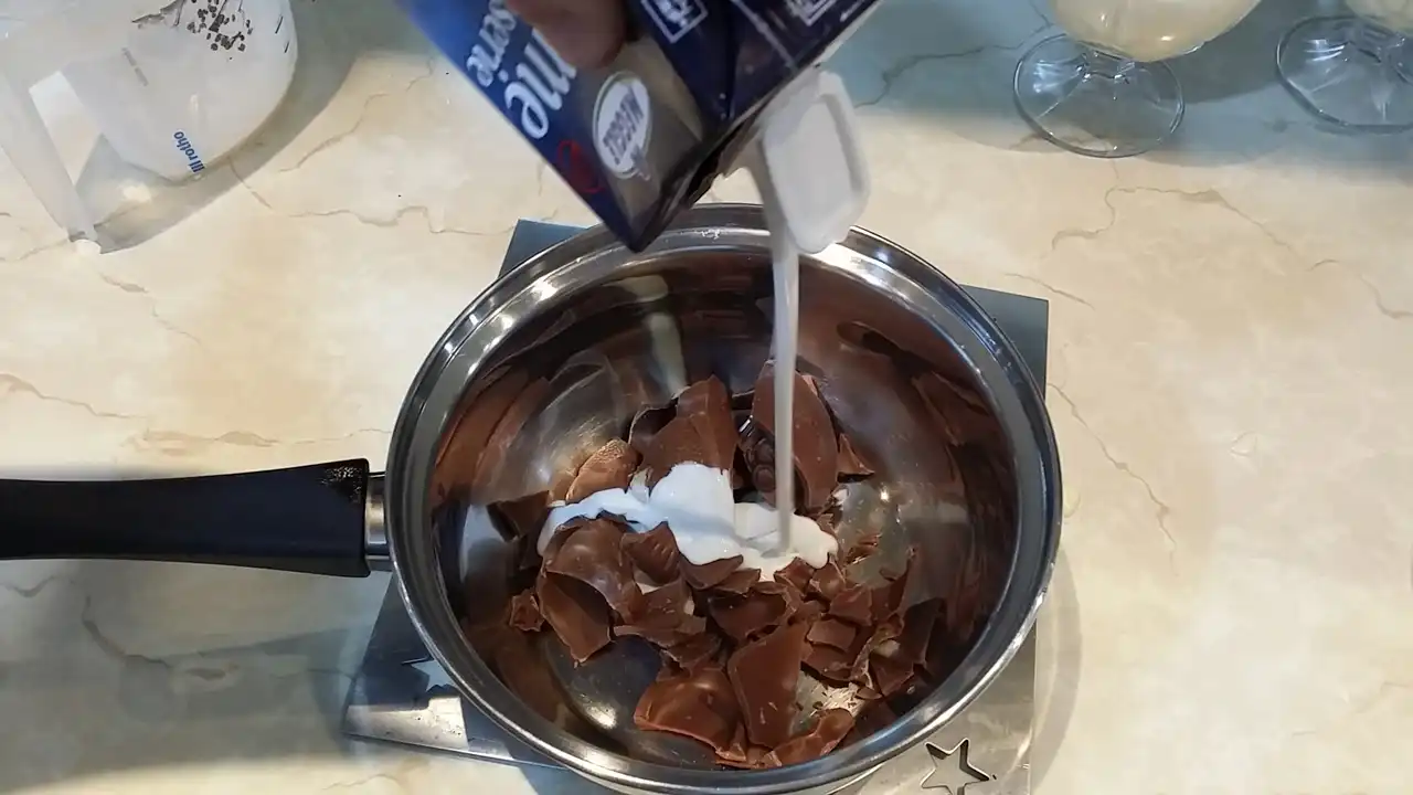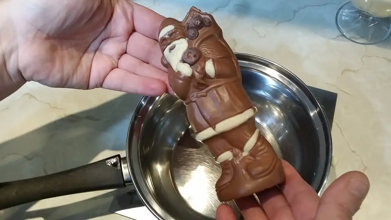 Za poseban dodir, preporučujem da krem u čaši od bele čokolade obogatite braon glazurom od čokoladnog božićnog deda mraza. Ova kombinacija stvara savršen kontrast i dodatnu slatkoću koja će oduševiti sve.
