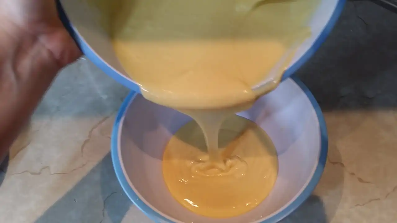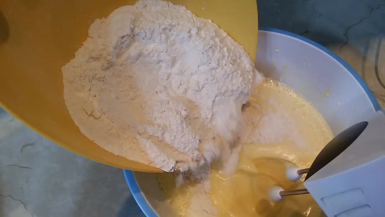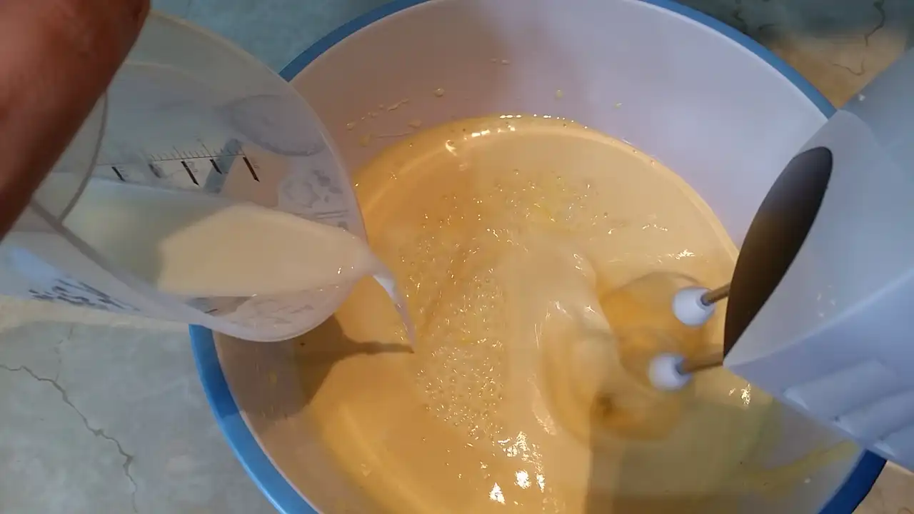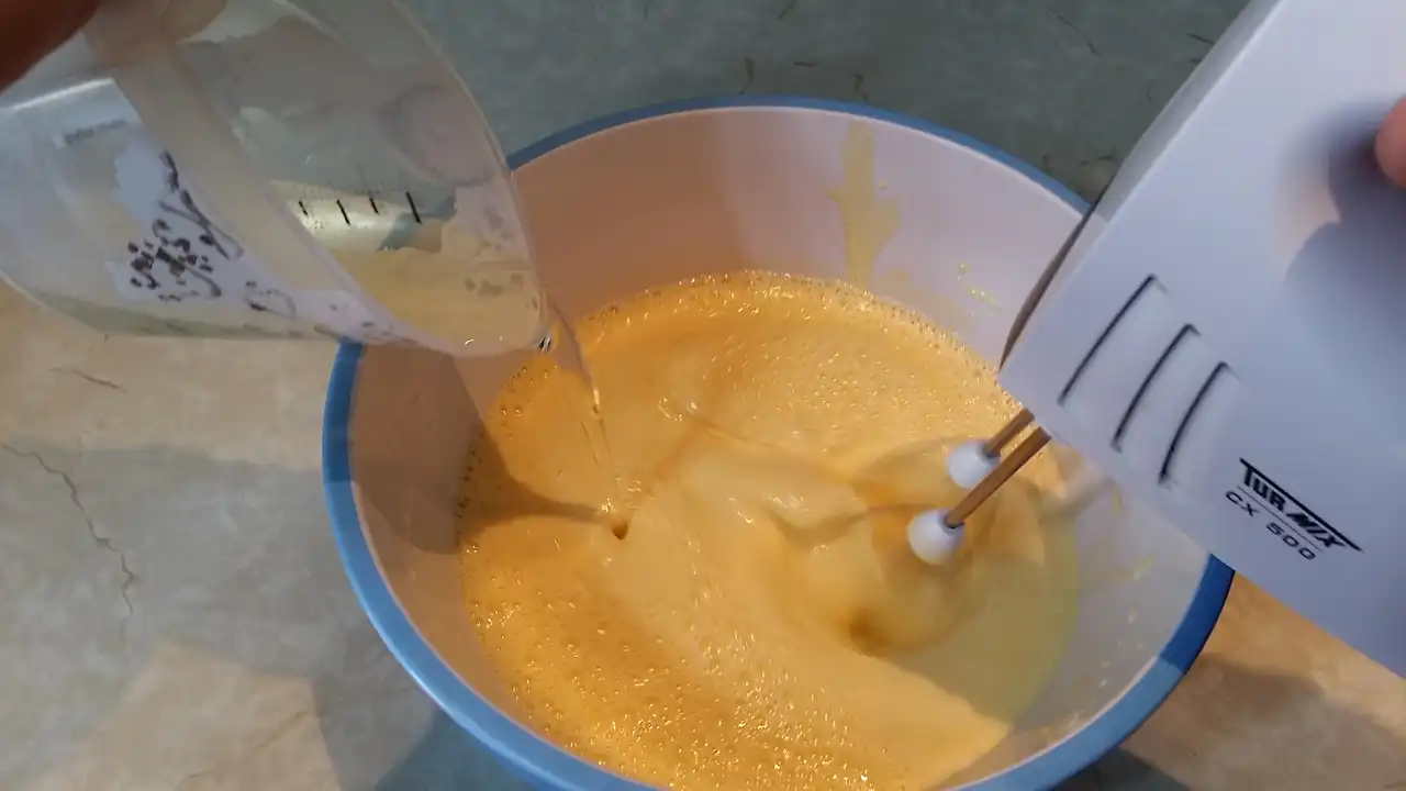 Prvo sam u dubokoj posudi umutila jaja sa šećerom i vanilin šećerom dok nisu postali lagani i kremasti – znate već, onaj trenutak kad pomislite da ste možda otkrili tajnu vazdušastog biskvita. Zatim sam dodala mleko i ulje, i mešala pažljivo, kao da pravim nevidljivu magiju. Brašno sam pomešala sa praškom za pecivo i postepeno dodavala u smesu, pazeći da ne napravim grudvice, jer grudvice u kolaču su kao neželjeni gosti – niko ih ne voli.