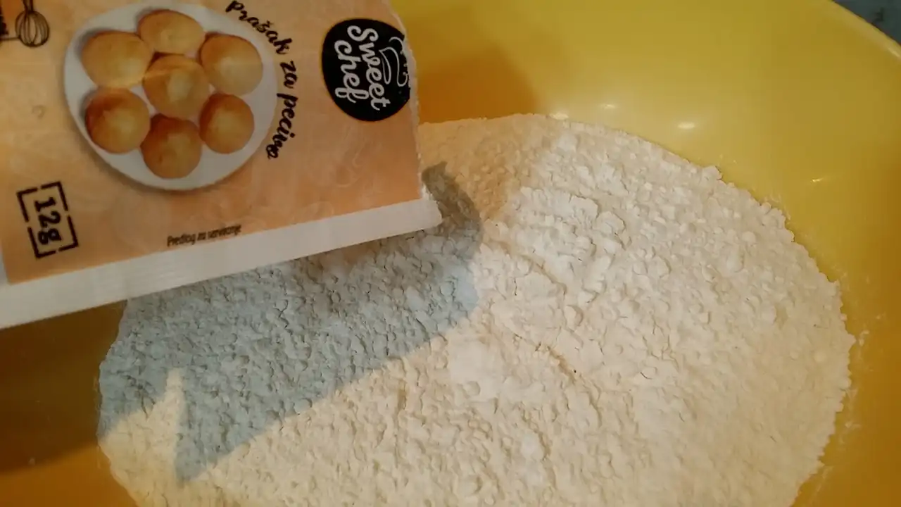 - Brašno i prašak za pecivo – osnova za rast i savršenu teksturu kolača. Bez njih, kolač bi bio samo tečna smesa u plehu.