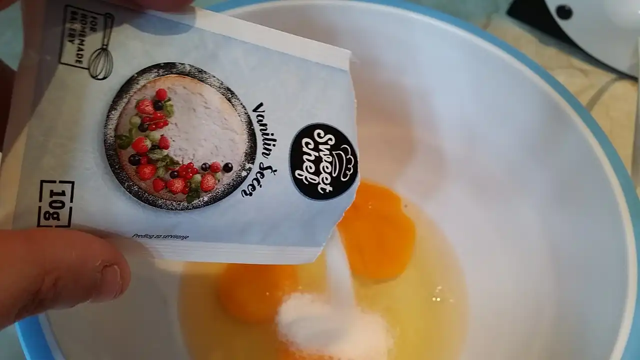 - Šećer i vanilin šećer – slatkoća i blaga aroma vanile koja kolaču daje onu finu notu topline.