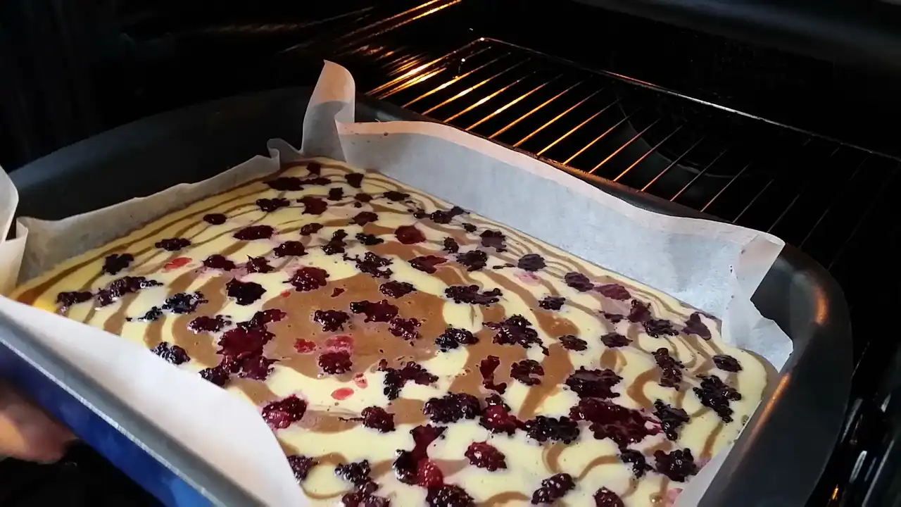 Na kraju, nisam mogla da odolim, pa sam kupine obilno posula po vrhu i lagano ih utisnula u testo, jer kupine u kolaču su kao prijatelji na žurci – što ih je više, to je zabavnije!
