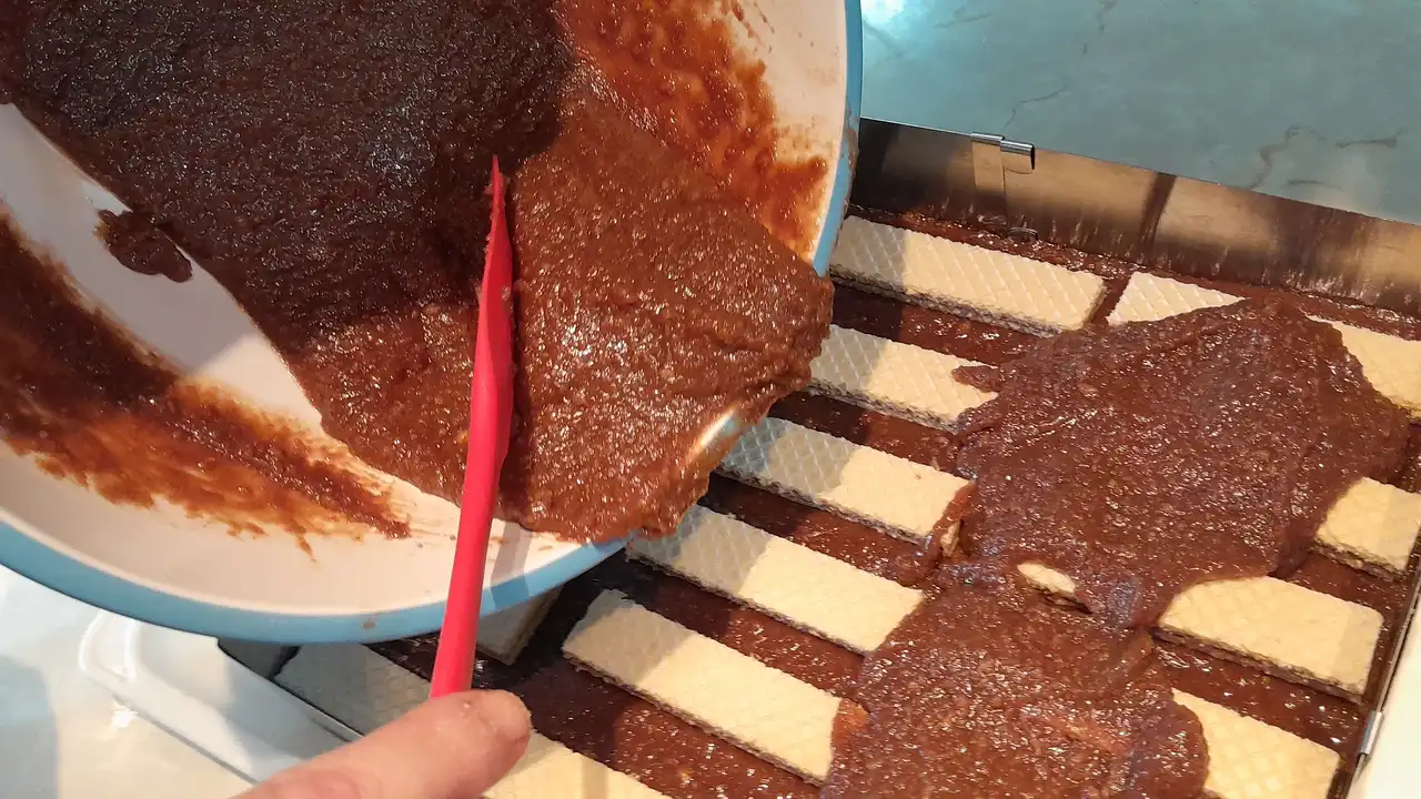U blenderu zavrteh petit beurre keks, miris detinjstva ispuni vazduh, dok sam na srednjoj vatri u šerpi nežno rastapala mleko sa šećerom, margarinom i komadima čokolade koje su se polako predavale toplini. Fil postade glatka reka, u koju umešah mleveni keks, energičnim pokretima ga sjedinjujući u savršenu masu. Oblatne sam isekla po tačnom obliku kalupa, kao umetnik platno, položih prvi list, rasporedih napolitanke sa razmacima jednog prsta – šarene, hrskave, pune obećanja. Preko njih premažem polovinu fila, ravnomerno ga razmazujem, prekrijem drugim listom, i sve tako, jedan po jedan, dok ne stigoh na zadnjem, gde stavim papir za pečenje i tešku knjigu na vrh.
