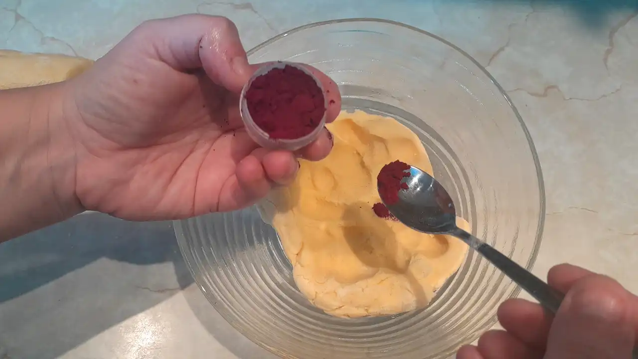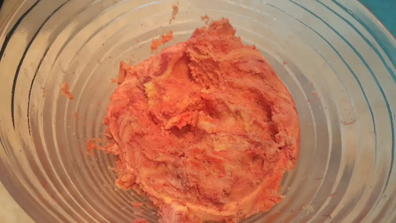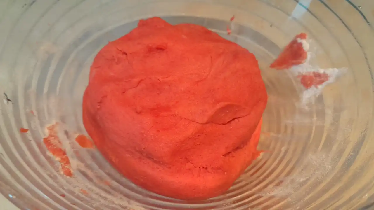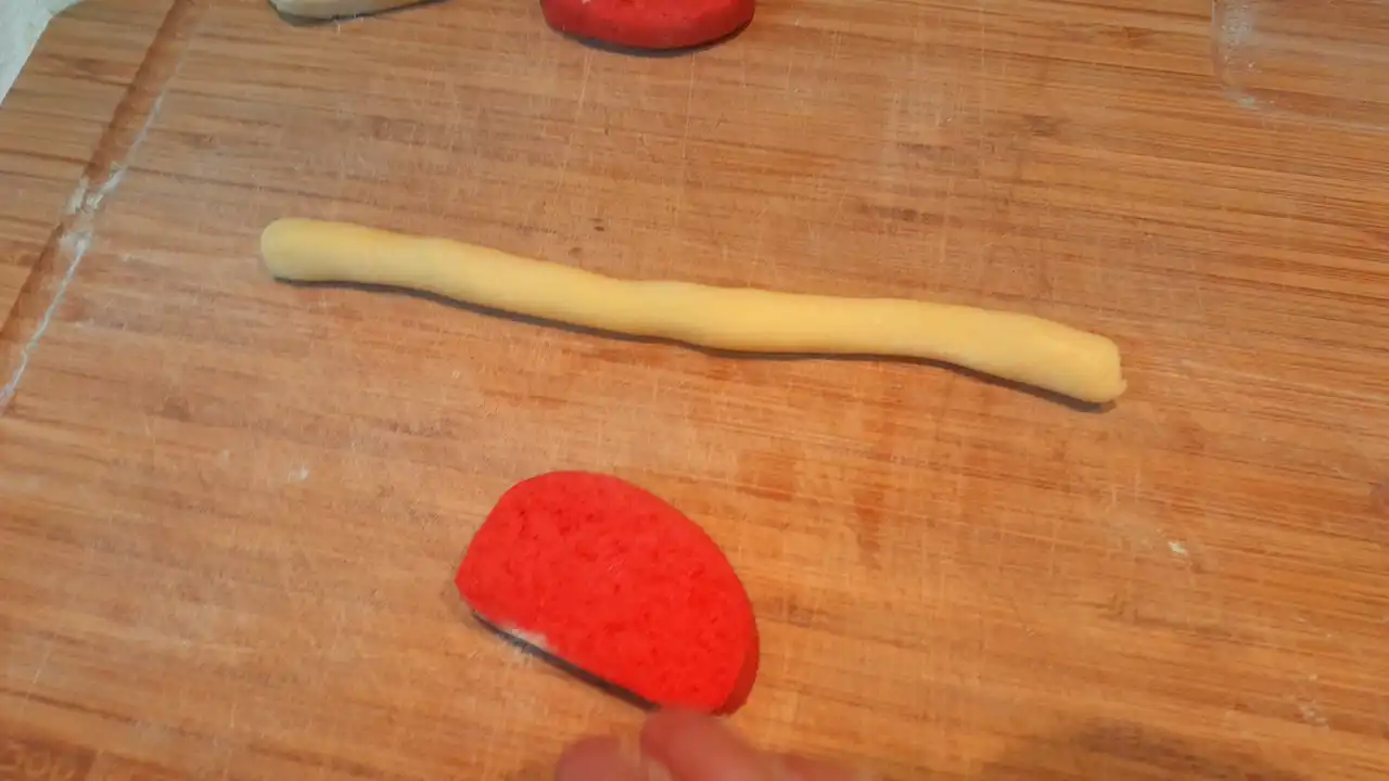 - Jestiva boja za kolače – za mene je to crvena, ali vi možete dodati i narandžastu, žutu ili kombinaciju koja vam liči na vašu božićnu priču.
