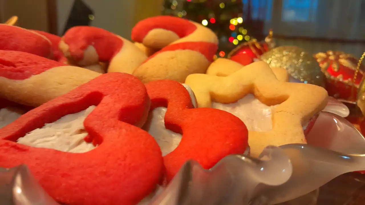 Dok mesim testo od jaja, belog šećera i omiljenog vanil šećera, uvek mi negde u pozadini igraju novogodišnje pesme. Kada se doda mekani margarin, mirisi postanu još puniji, a uz malo brašna i prstohvat praška za pecivo testo pretvara u savitljivu, pitomu kuglu koja jedva čeka da je oblikujem. Polovinu ostavim svetlu, a u drugu umešam jestivu boju za kolače – kod mene je to obično crvena, da podseti na kapu Deda Mraza, ali možete birati nijansu koja vama mami osmeh. Kad posle pečenja iz rerne izađu prugasti božićni kolačići, nežna srca i mekane zvezde, uz prozor se još malo zadržim da pogledam pahulje napolju i zahvalim se na tom malom prazničnom miru u tanjiru.
