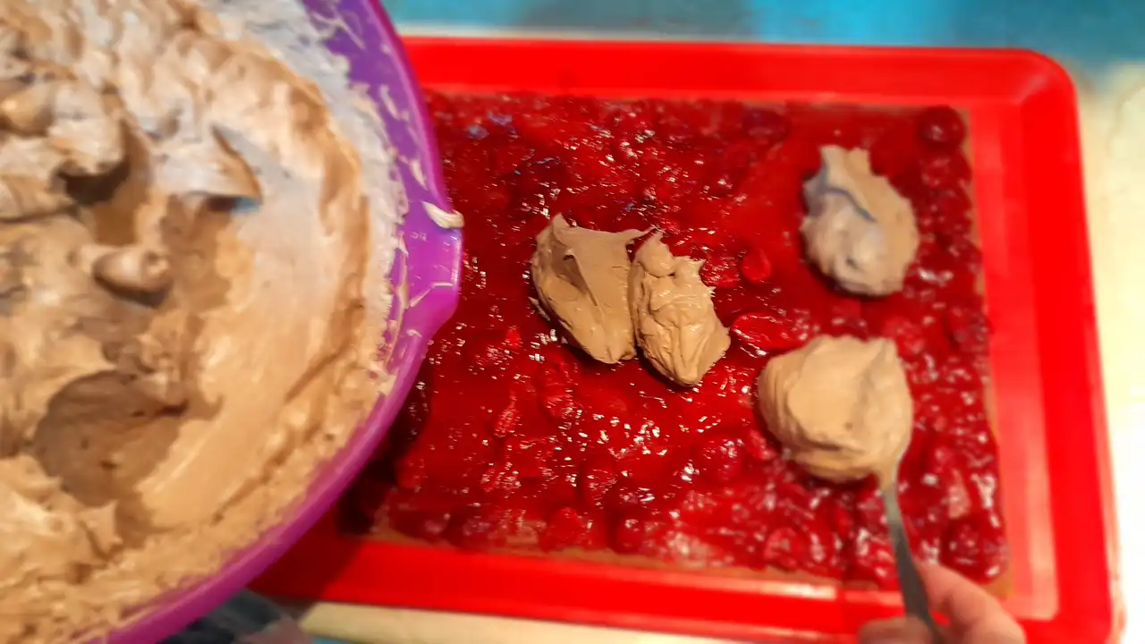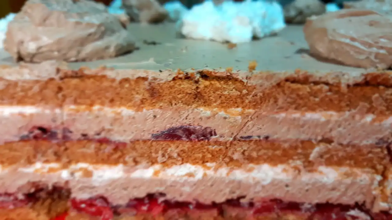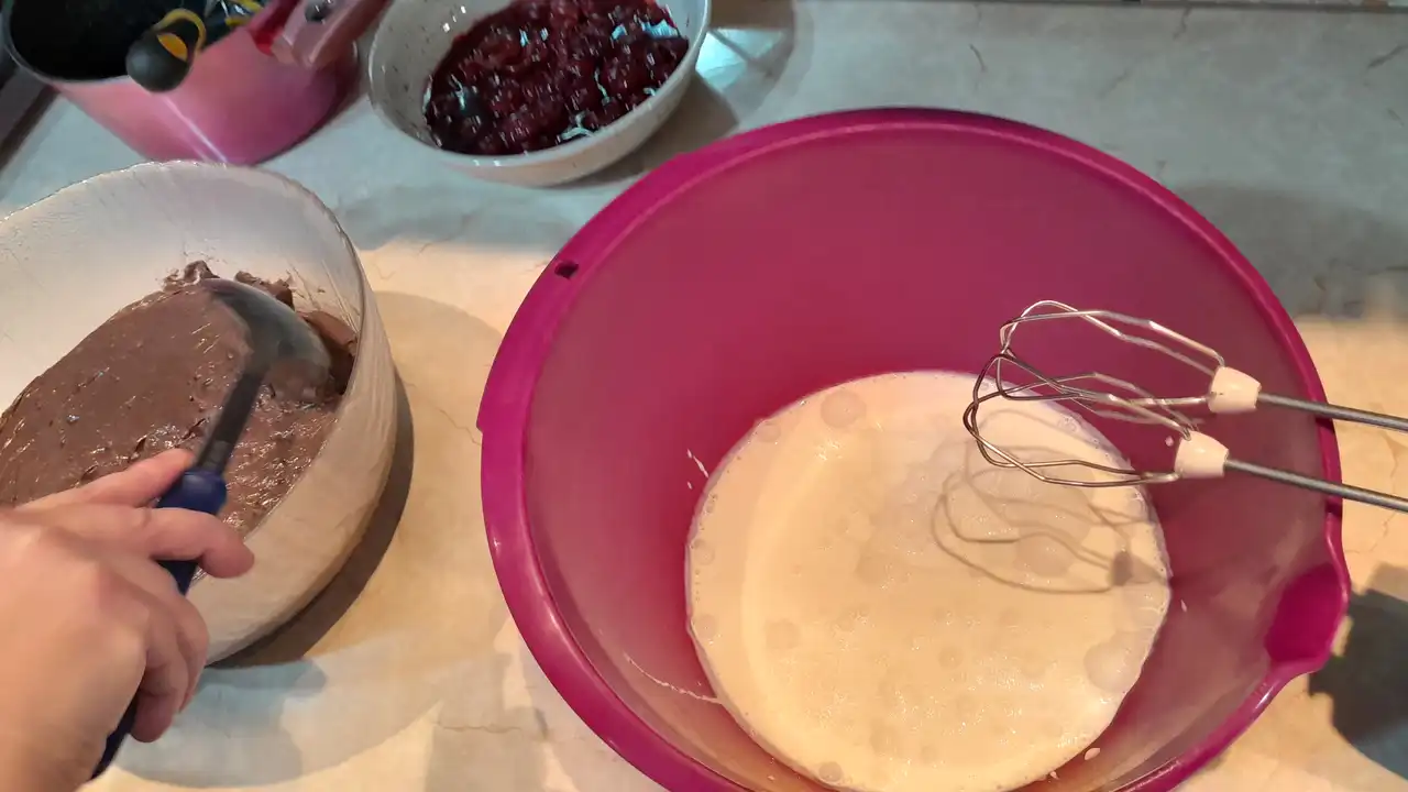 Sa puno ljubavi prema vama, evo šta sam ubacila u ovaj moj mali prekršaj: mleko za sočno natapanje kora, višnje iz zamrzivača, koje sam našla u nekom uglu zamrzivača, koje prskaju sok kao jesenja kiša, čokolada i puding za onaj gusti fil koji grli sve, plus šlag sa mineralnom vodom za pahuljasto olakšanje savesti. Sve se lepo slaže u 18 porcija, baš koliko treba za porodični „greh“ bez ostatka.